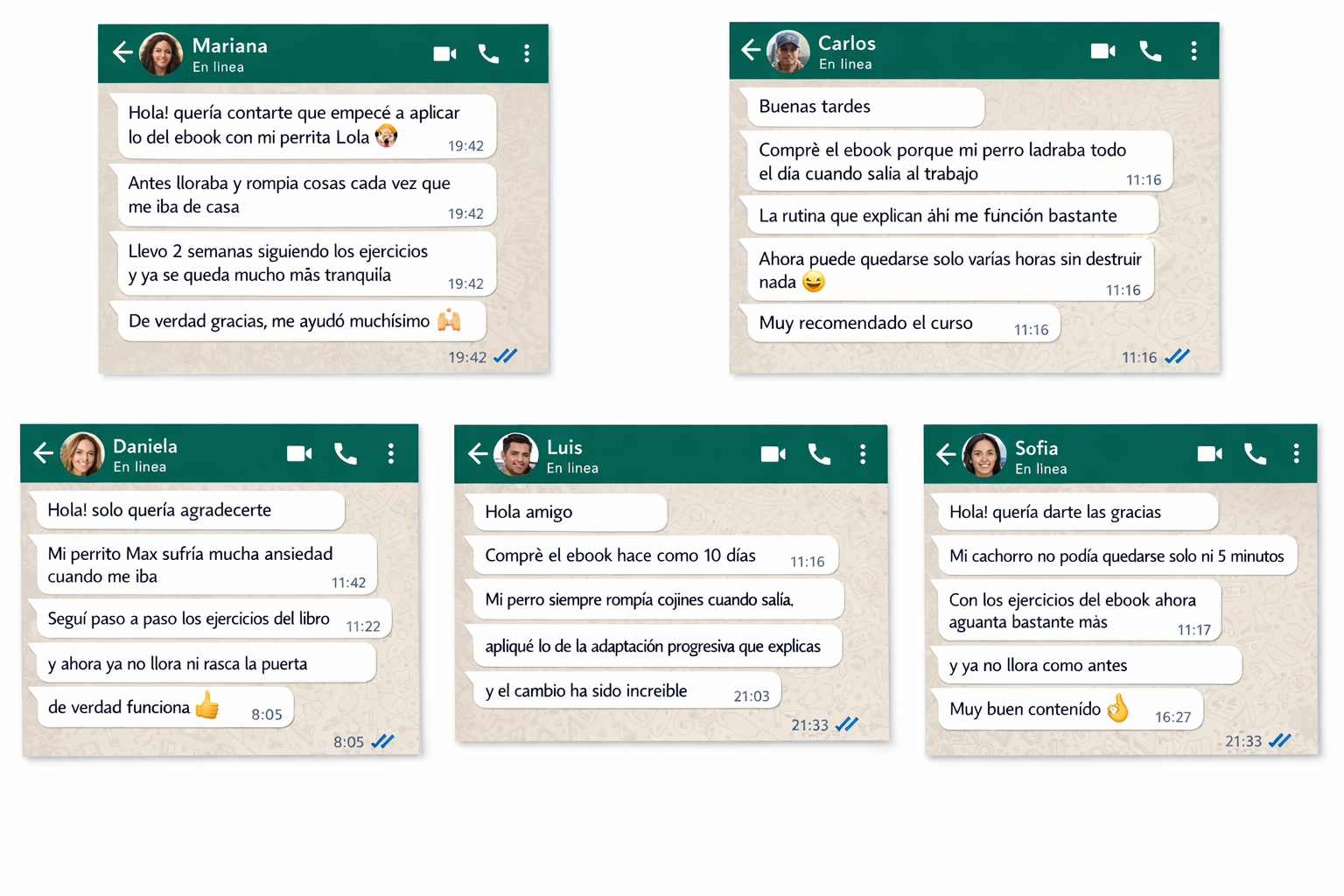 Un “manual de emergencia” con guiones claros para actuar en el momento: qué hacer al abrir la puerta, cómo reiniciar si salta o ladra, cómo salir sin drama y cómo volver sin reforzar el problema. Ideal para no improvisar y ser consistente desde el día 1.